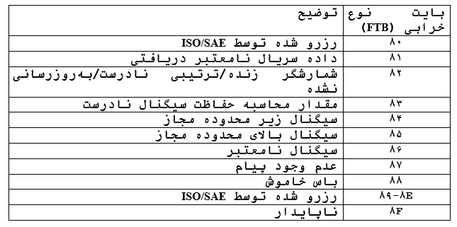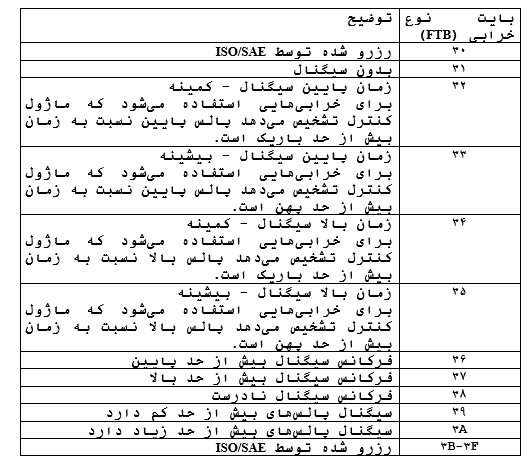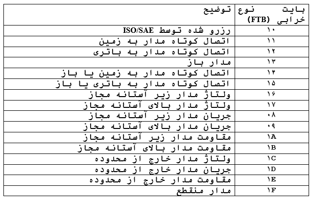 برای مثال: Pxxxx01– اعداد پررنگ بایت نوع خرابی (FTB) هستند.