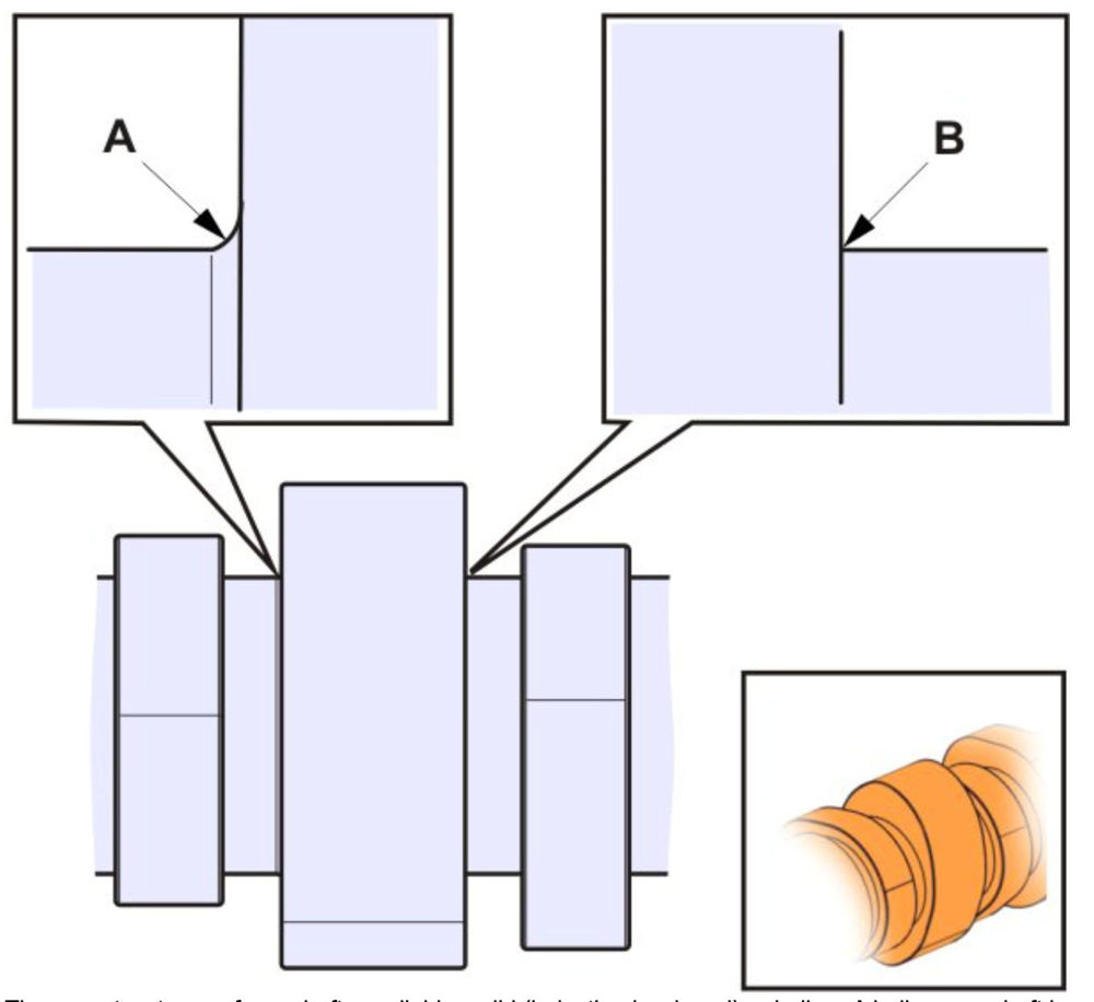 • اما یاتاقان شماره ۷ دارای شیار جدیدی (c) برای بهبود روانکاری و تخلیه روغن اضافی است.