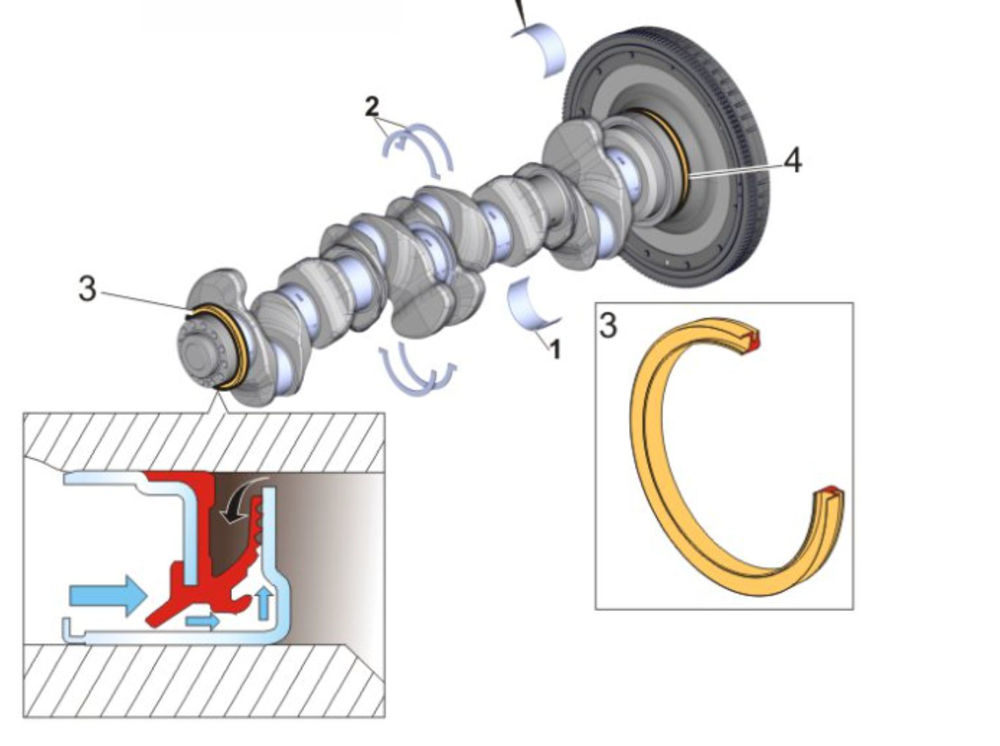 در قسمت جلویی میللنگ، یک کاسهنمد مخصوص (3) برای آببندی نصب شده است.