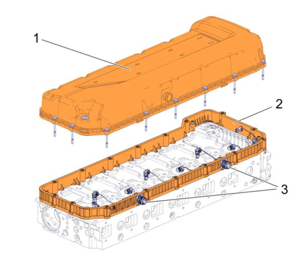 در قسمت پایینی، سه عدد اورینگ (2) در شیارهای بلوک سیلندر نصب میشوند. این اورینگها از جنسهای مختلف لاستیکی ساخته شده و رنگهای متفاوتی دارند تا هنگام مونتاژ اشتباه نشوند: