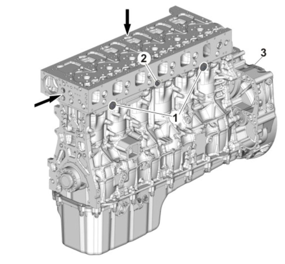 بهمنظور سهولت در مونتاژ و تراز دقیق سرسیلندر روی بلوک سیلندر، سه عدد واشر راهنما در سمت چپ موتور تعبیه شده است — دو عدد روی بلوک سیلندر (1) و یکی روی خود سرسیلندر (2).